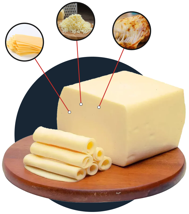 Criamos um estabilizante inovador, sem amido, que é a escolha certa para elevar a qualidade de mussarela, mantendo a qualidade em textura, derretimento e vida útil, sem nenhuma complicação para a sua produção.